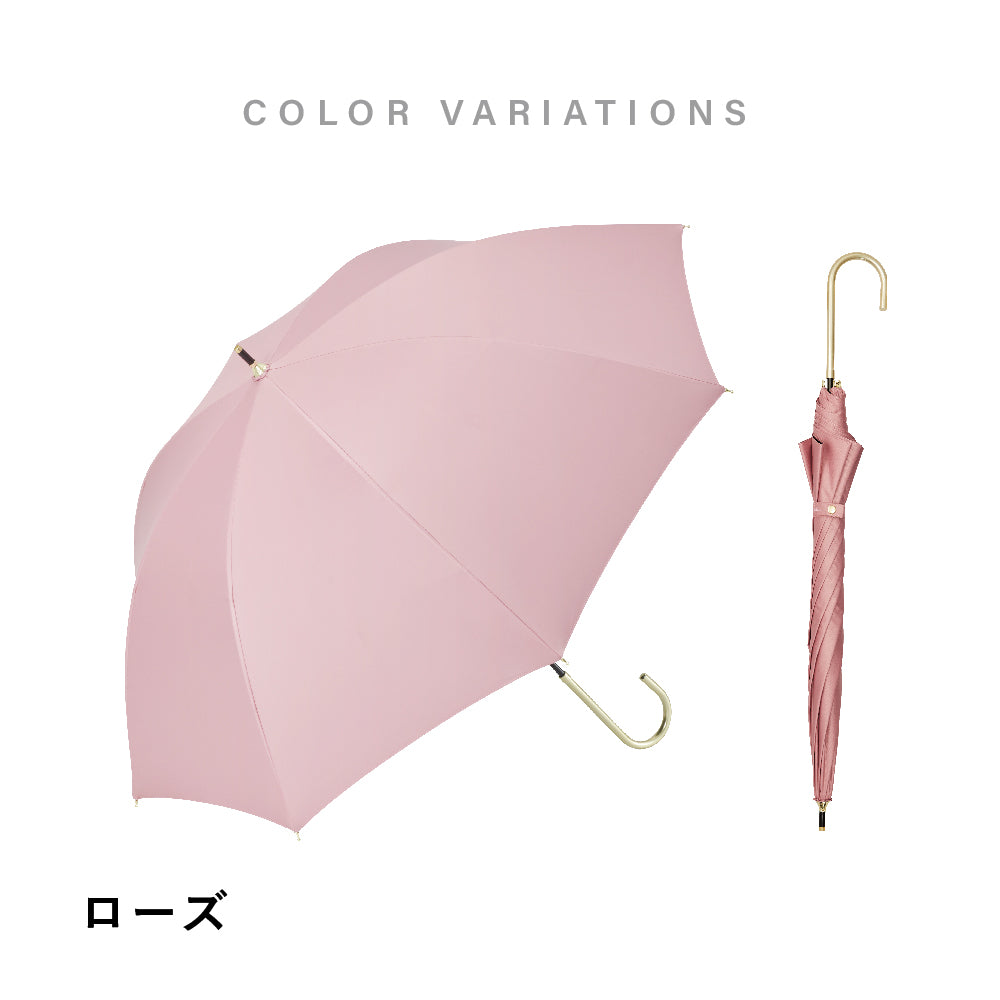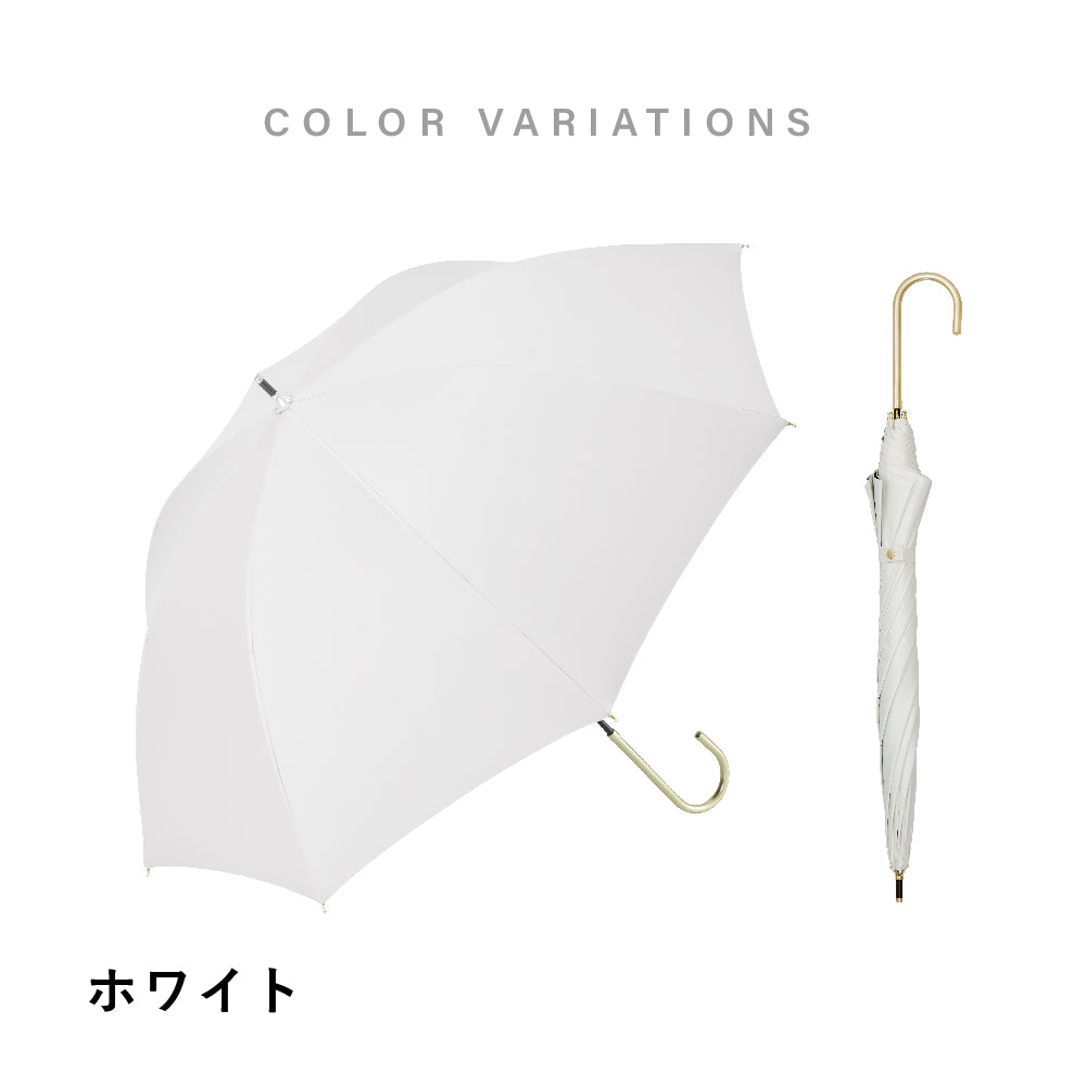 This parasol has an elegant impression with its simple and chic colors and gold material. Blocks sunlight with a UV cut rate of over 99% and a shading rate of over 99%. Hand-open type. This is a product limited to physical stores.